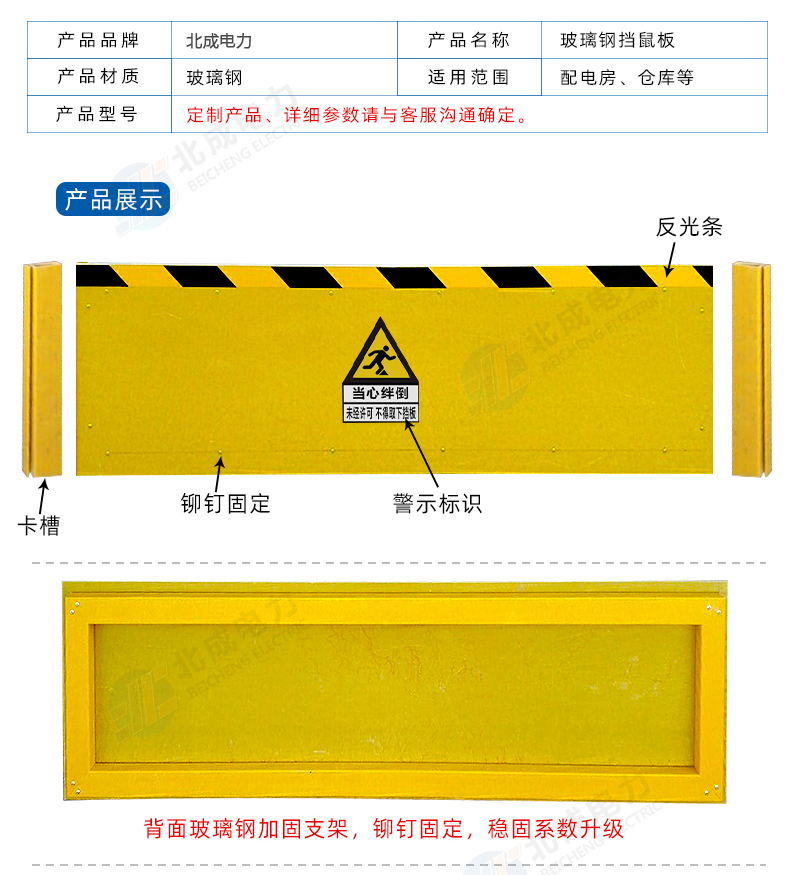 3.擋鼠板上部貼有反光條,夜間容易辨別,防止人員被絆倒。